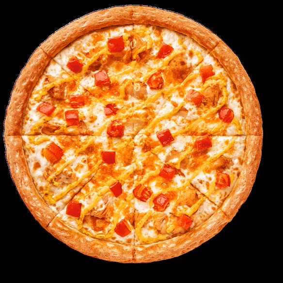 Цыпленок, моцарелла, сыры чеддер и пармезан, сырный соус, томаты, фирменный соус альфредо, чеснок Пицца 25 см: Традиционное тесто. Пищевая ценность на 100 г Энерг. ценность 243.2 ккал Белки 11 г Жиры 8.5 г Углеводы 28.9 г Вес 410 г